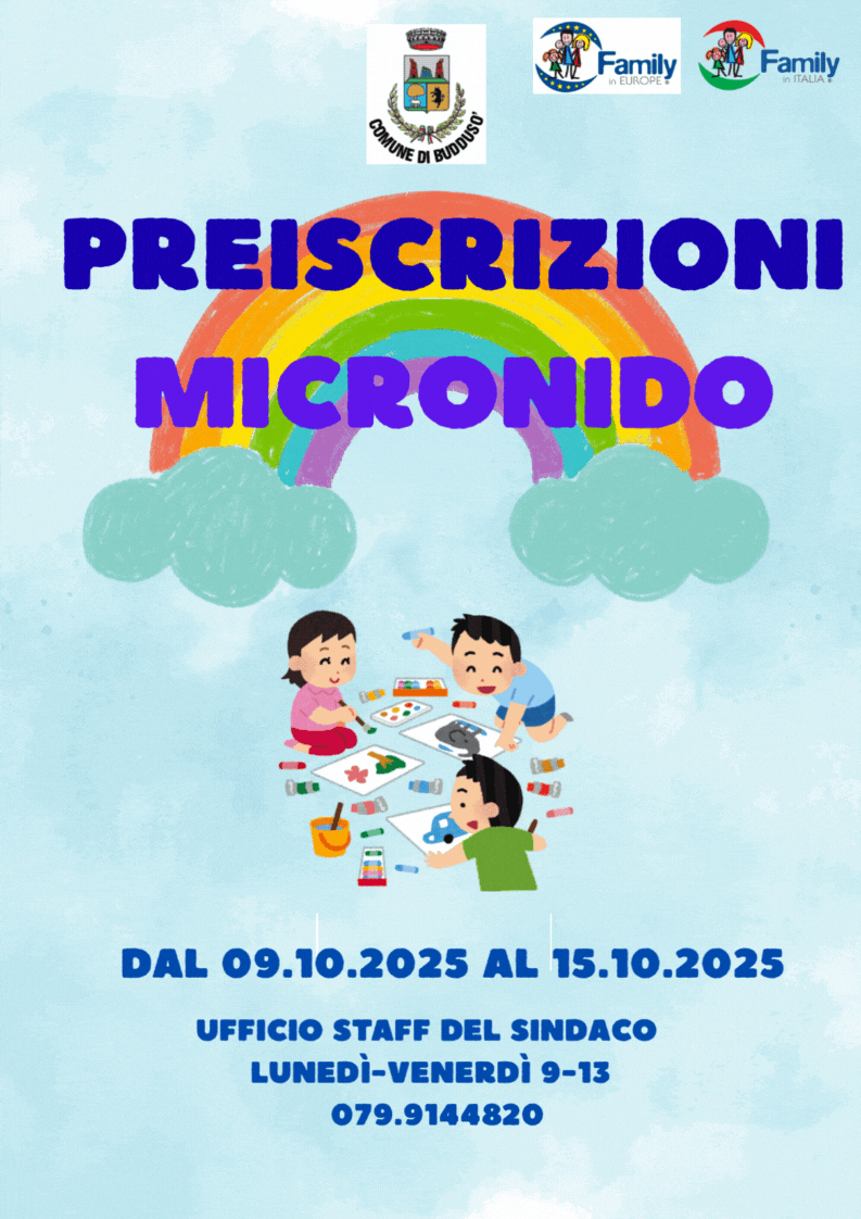 🏫 È con piacere che, in vista della imminente apertura del micronido comunale, prevista per il mese di Novembre 2025, salvo diverse indicazioni, comunico l'apertura delle preiscrizioni al servizio.